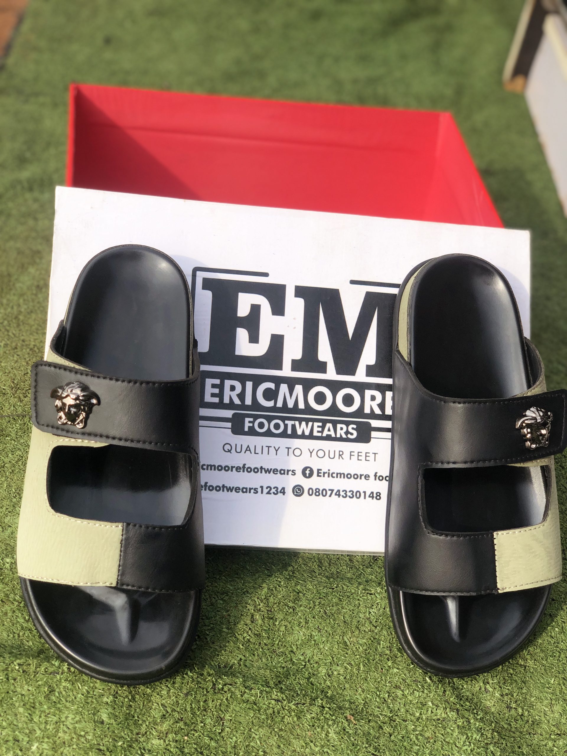 Step into effortless style with these premium black and olive green dual-tone slides from Ericmoore Footwears. Designed with comfort and luxury in mind, these slides are perfect for casual elegance or elevated streetwear looks.
